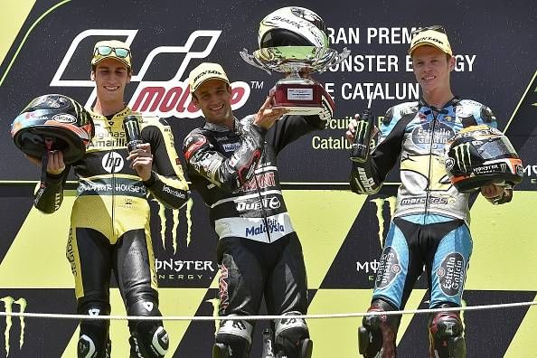 Unlike the previous races, Moto2 continued where the Moto3 left off. For once there was a scintillating scuffle for the lead between Tito Rabat and Alex Rins. Meanwhile Johann Zarco quietly sneaked into 3rd and watched the drama unfold as Rins repeatedly tried and failed to rein in Rabat. The highlight of the race was the last 2 laps when Rins missed the braking point Zarco needed no second invitation. On the final lap Rabat too crumbled under pressure and Zarco instantly swooped in. it was further heartbreak for Rabat when he tried a move on Zarco in a last ditch attempt but ran wide, Rins immediately robbed the second podium spot from a distraught Tito. Championship hopeful Sam Lowes finished a distant fourth.