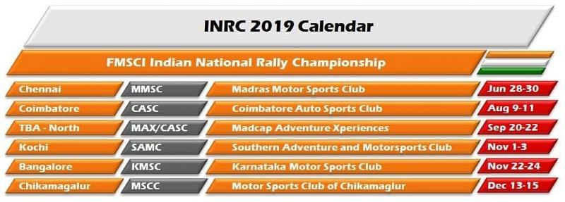 The six-round INRC championship is scheduled to begin with the South India Rally at Chennai followed by Coimbatore, Kochi, Bangalore, and Chikmagalur.