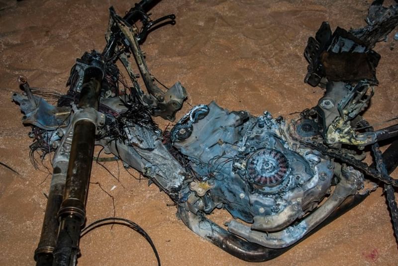 On day three of the Abu Dhabi desert challenge, Santosh, who was placed in the top 15 and was 20 kms away from the finish, faced trouble when his Suzuki MX 450 Z caught fire. A fuel overflow issue was the cause and the searing desert heat led to his bike overheating, a double whammy that led to Santosh’s riding gear catching fire. Santosh suffered third-degree burns, and could have been fatally wounded had help not arrived in the form of the crew of BMW X-Raid team, who noticed the biker in trouble.