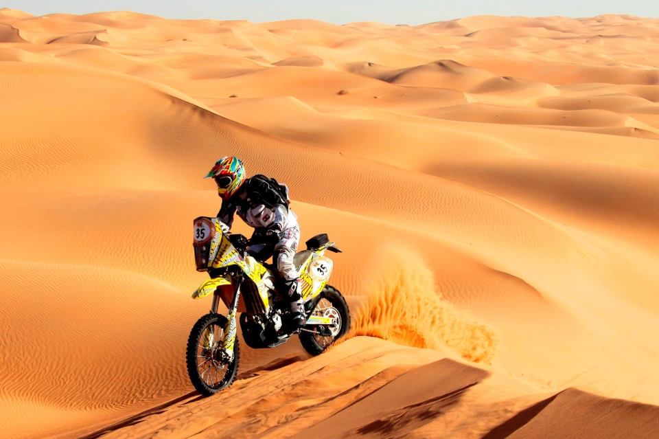 In April 2013, after a decade of racing in national and international competitions, CS Santosh finally debuted in the FIM Cross Country Rally World Championship in Abu Dhabi. His plan was to be ready for the Dakar Rally 2015, and the experience gained from two years in the Cross Country Rally World Championship would hold him in good stead for the ultimate Dakar challenge.