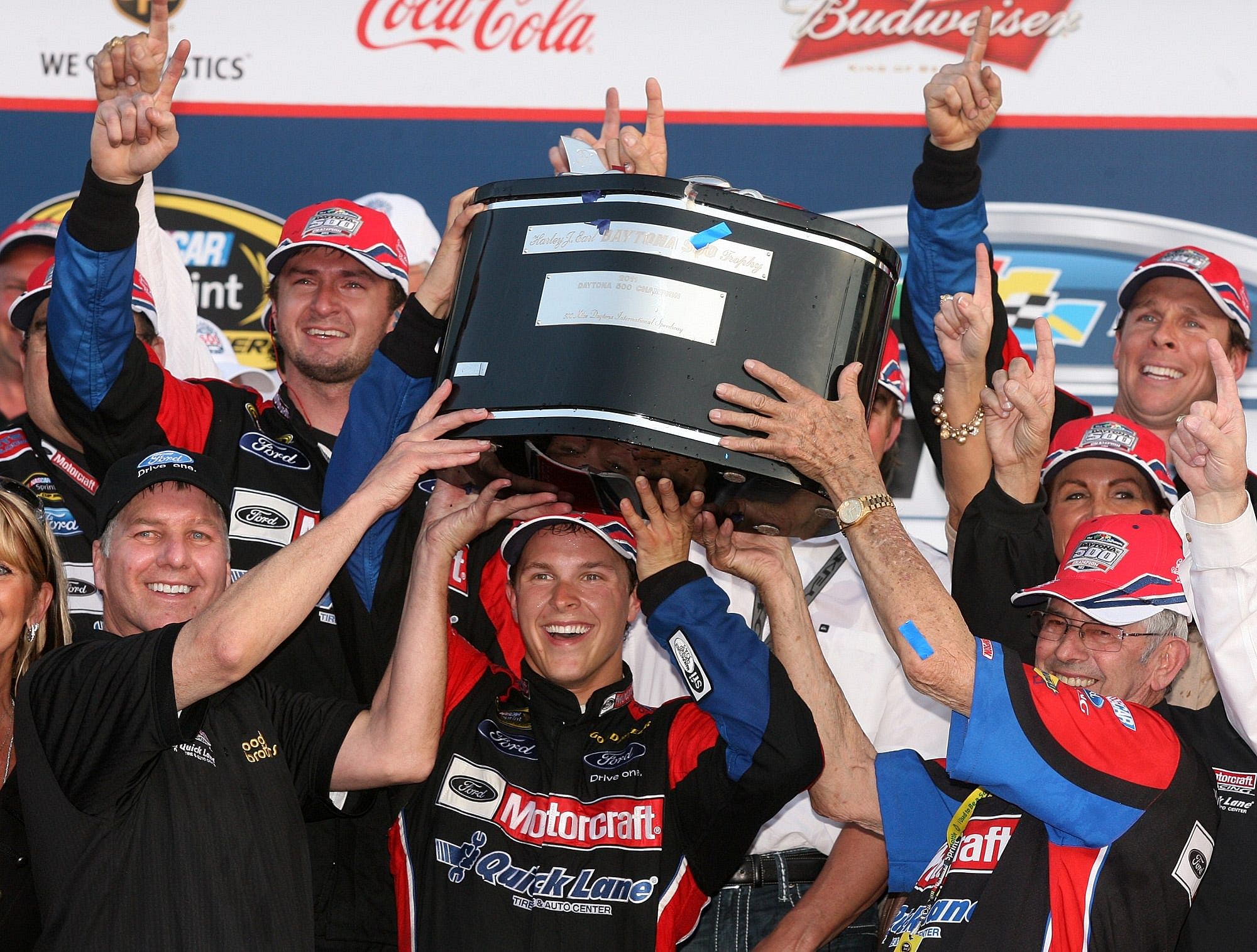 In just his second career NASCAR Cup Series start, Trevor Bayne stunned the racing world when he wheeled the #21 Wood Brothers Racing Ford to victory in the 2011 Daytona 500. At 20 years and one day old, Bayne is the youngest driver to win the 200-lap event at the Daytona International Speedway.