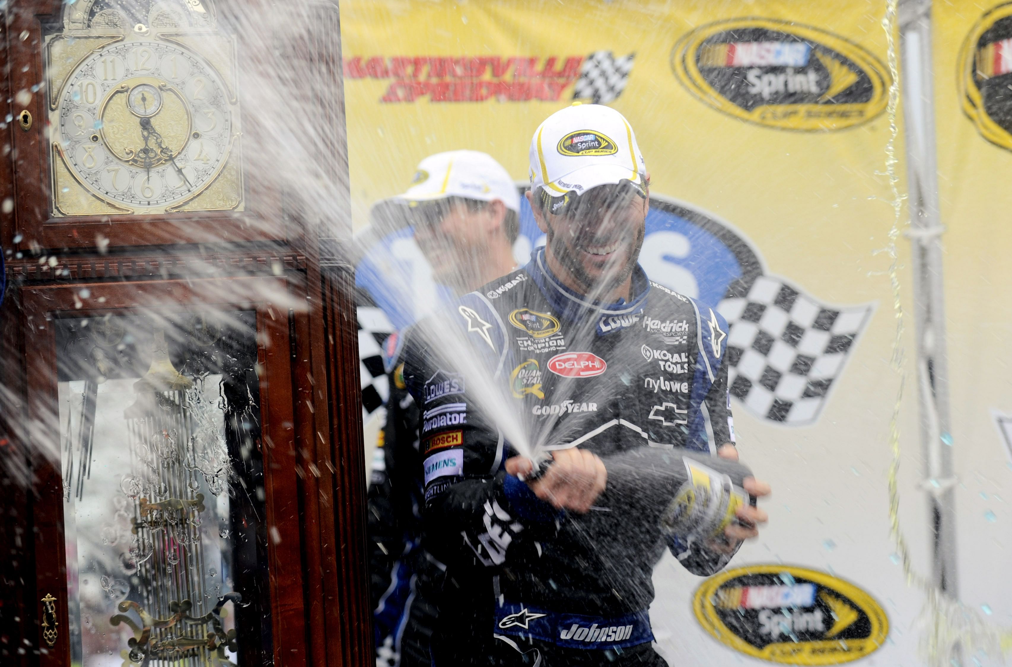 Seven-time NASCAR Cup champion Johnson won nine Martinsville grandfather clocks and keeps most of these trophies in his 'man cave'.