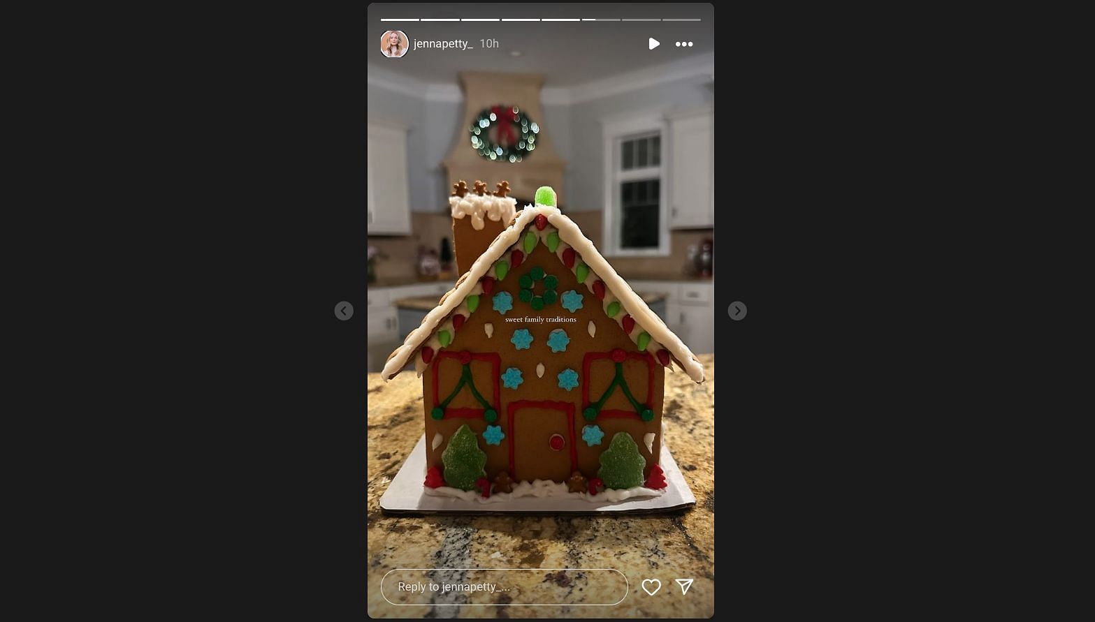Petty uploaded Instagram stories that hinted at the beginning of Christmas festivities. Burton's fiance uploaded a picture of the gingerbread house with the caption: