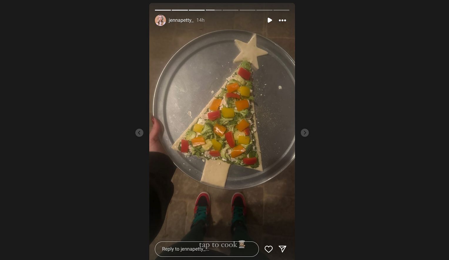 Looking at the Instagram stories uploaded by Petty, it looks like she made the gingerbread house herself. She uploaded pictures of herself baking a pizza. However, she had the Christmas vibe going on, with the pizza itself as the dough was cut in the shape of a Christmas tree. She uploaded a picture of the uncooked pizza with the caption: