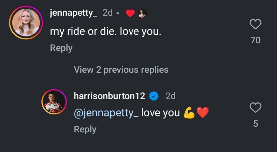 In response to Burton's post, Jenna Petty expressed her support in the comments. She wrote: