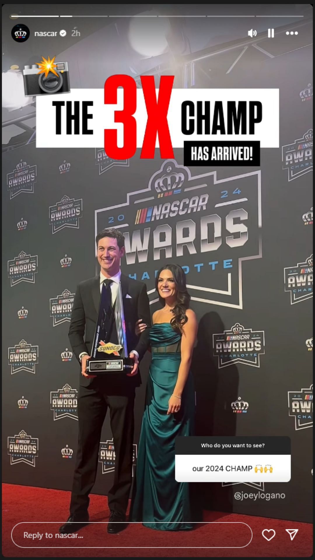 The NASCAR stars have arrived at this year’s Awards Banquet in Charlotte. NASCAR took to Instagram and shared some moments from the red carpet graced by Joey Logano, Dale Earnhardt Jr., and Chase Elliott, among others.