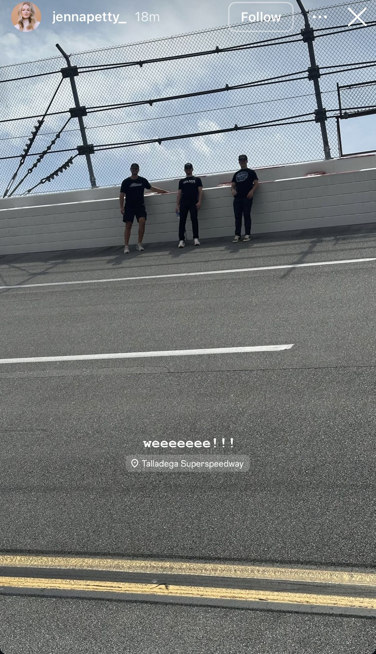 On Instagram, Harrison Burton’s fiancé shared a picture of him checking out the steep incline that Talladega is so known for. She captioned the story: