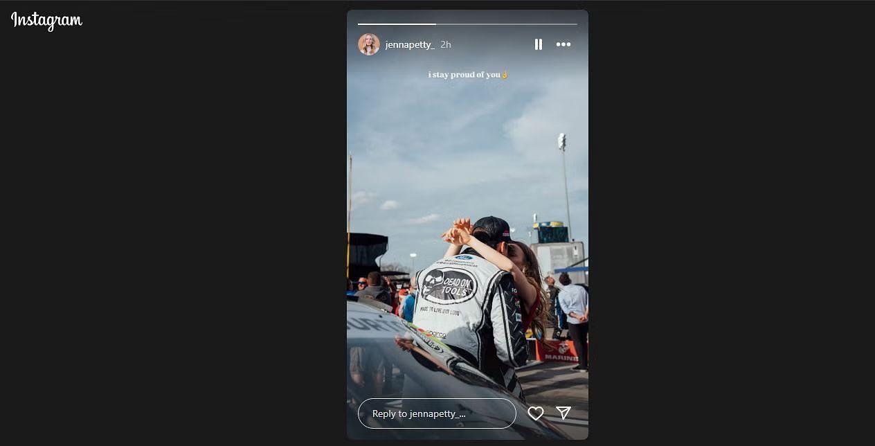 Harrison Burton’s fiancée, Jenna Petty, shared a story on her Instagram account where she captured Burton checking out the famous 33-degree steep at Talladega Superspeedway. She shared the story before the Xfinity Race on April 26.