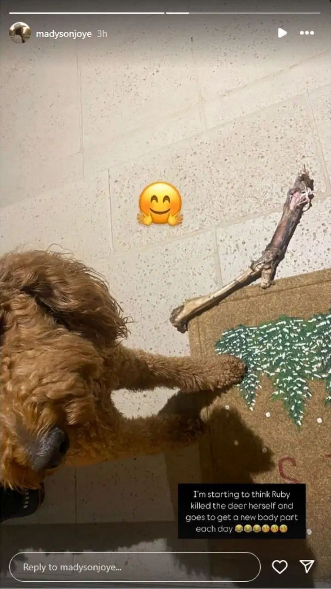 However, in previous Instagram stories, Madyson revealed her Doodle Ruby usually brings random bones from the woods to their home. She jokingly suspected Ruby might've gotten the bones from a deer she killed.