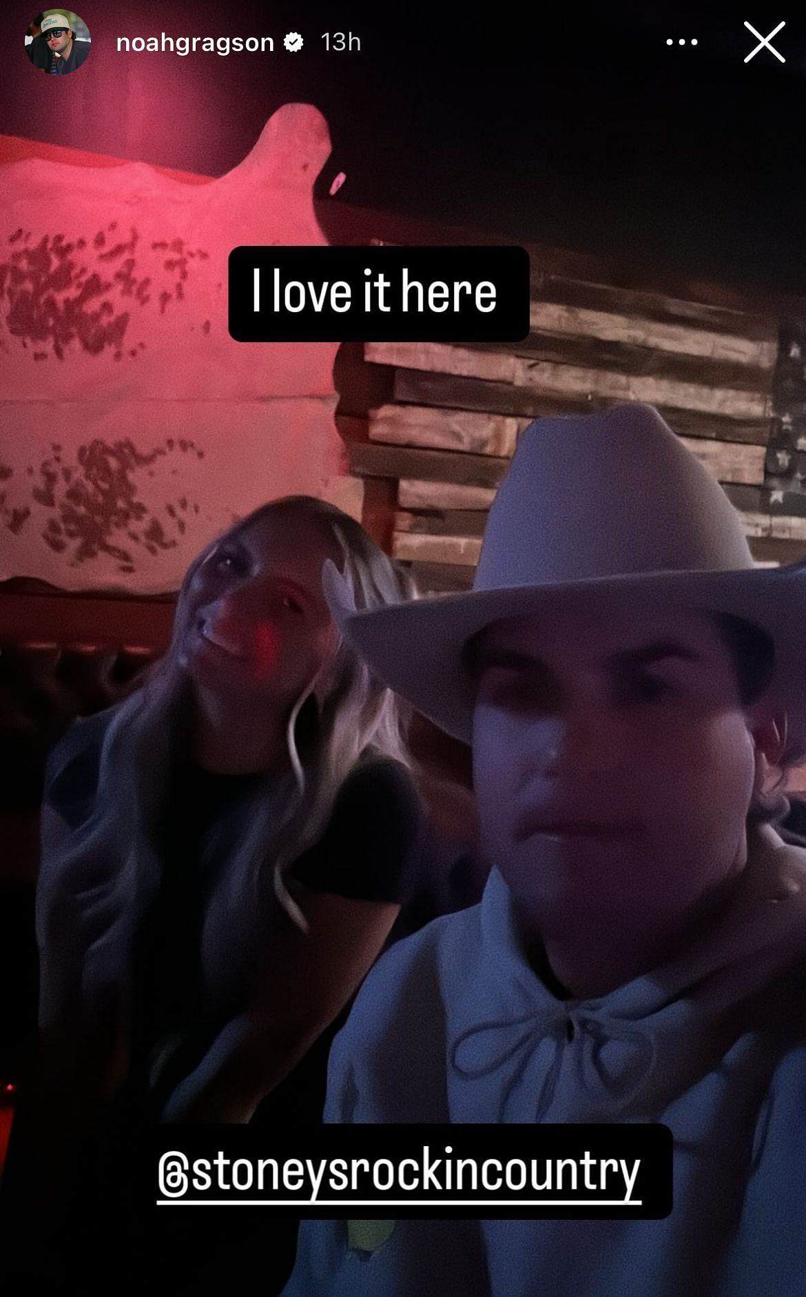 Gragson went on to post a selfie of himself and a woman at the nightclub in the following story. Rocking a cowboy hat and a gray sweatshirt as a fit, Gragson added a caption that read:
