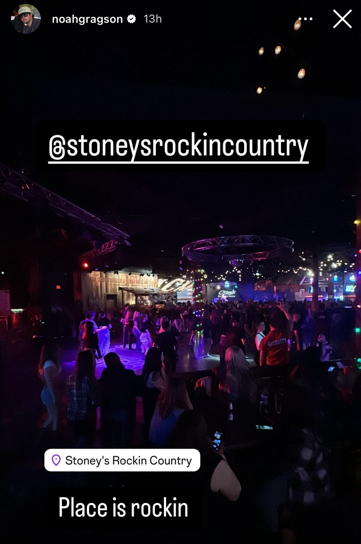 NASCAR Cup Series driver Noah Gragson seems to be enjoying his offseason time. In a recent Instagram story, the soon-to-be Front Row Motorsports driver snapped photos at Stoney's Rockin' Country, a country music nightclub in the driver's hometown, Las Vegas.
