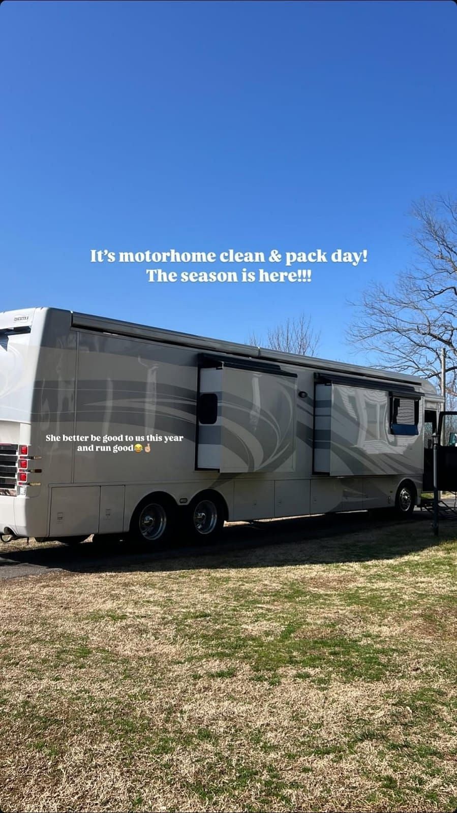 In her latest story, Marissa Gilliland shared an image of the couple's old white motorhome. Before heading out for 'The Great American Race' next week, she is cleaning the bus and packing for the season. She expressed her enthusiasm for the 2025 season and wrote:
