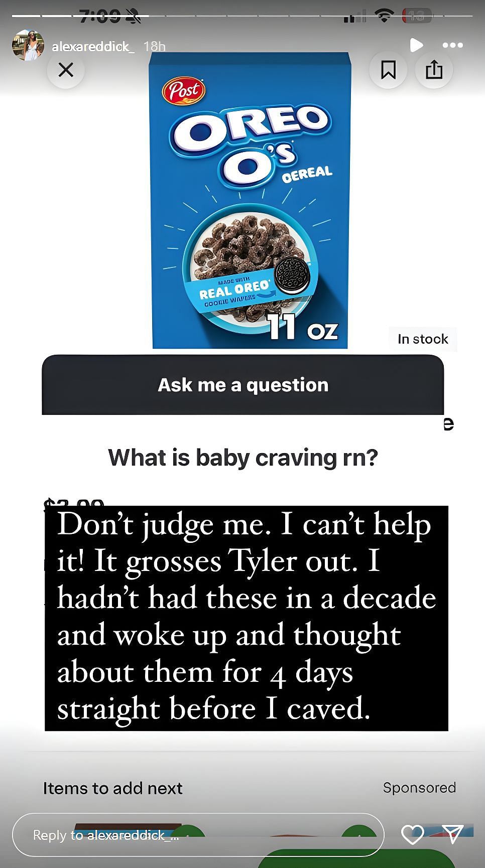 Recently, in the same aforementioned interactive session with her fans, Reddick's wife was asked to reveal her pregnancy cravings. She wrote: