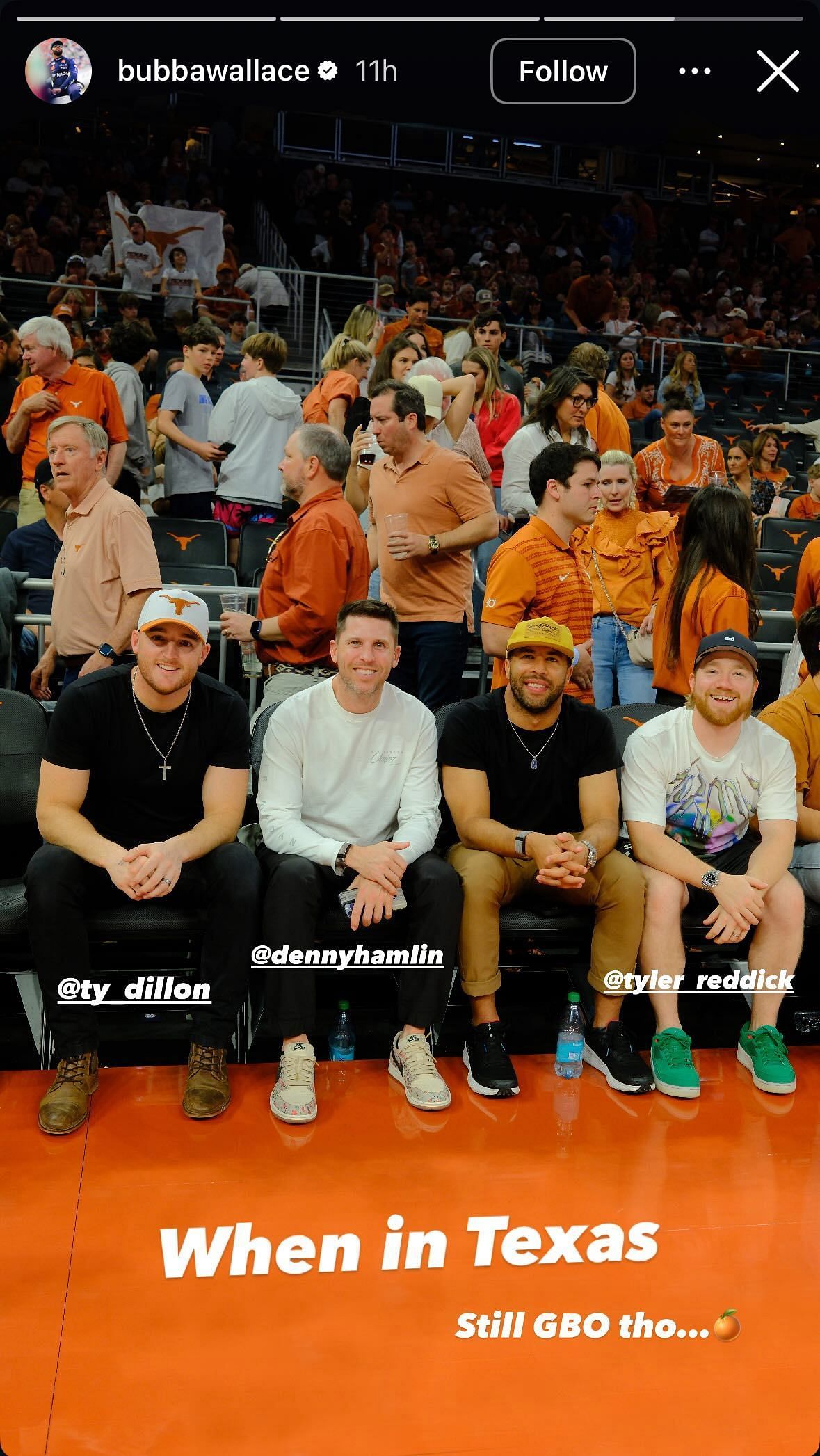 NASCAR Cup Series drivers Bubba Wallace, Tyler Reddick, and Denny Hamlin, accompanied by Ty Dillon, were all in attendance at a basketball game between the Texas Longhorns and the Georgia Bulldogs together. The game took place this weekend on March 1 at the Moody Center in Austin, Texas, and the drivers were able to be there as they are in town for the next race in the Cup Series calendar taking place at the Circuit of The Americas (COTA).