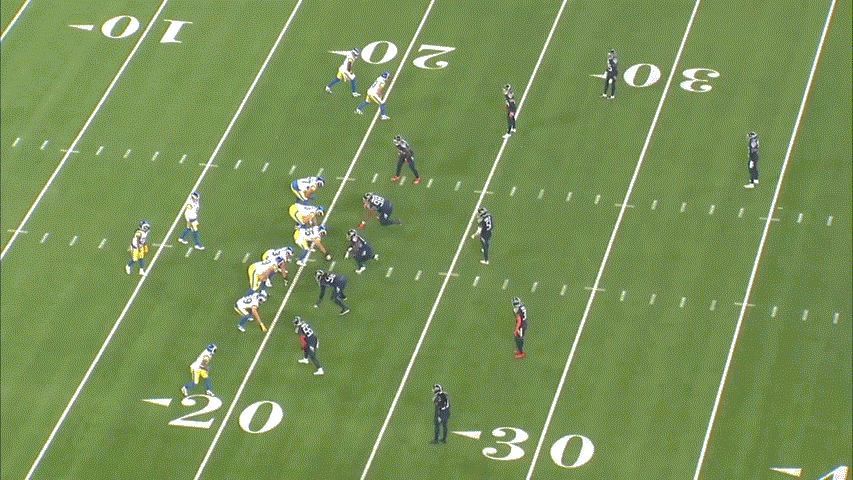 Nose-tackle D.J. Reader has been owning the point of attack in the run game in key matchups, like consistently beating Titans center Ben Jones across his face on the front-side of zone runs and forcing Derrick Henry to stop his feet or immediately look for the cutback. The Larry Ogunjobi injury hurts, but those guys up front usually do a good job of fighting over blocks and we haven’t really seen the Rams be able to win in the wide zone game much anyway. Something you commonly see from them is that they don’t usually follow tight-ends motioning across the formation, but rather pull that backside safety down and even slide him in stacked over the guard at times, while the WILL backer shuffles out further and now there’s kind of a plus one on the strong-side, where if you can seal the edge, there’s now room to run.