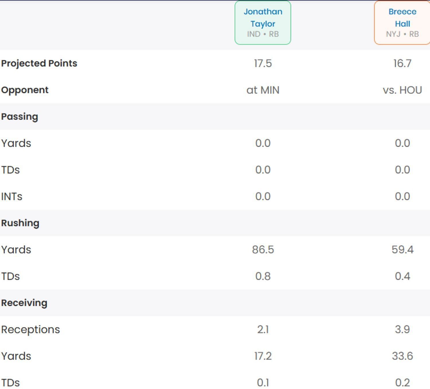 Whom should I start between Breece Hall and Jonathan Taylor?