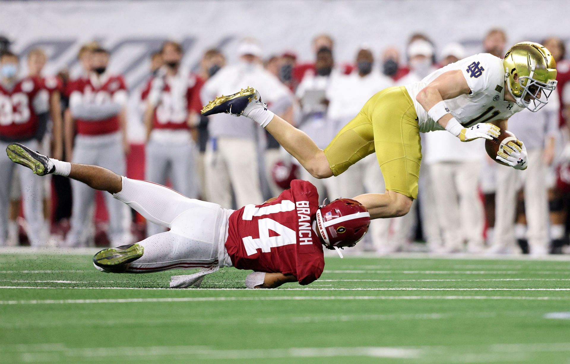 + You see Branch go from mugging the A-gap to sinking to the hook/seam area on the field-side, line up over the slot and fly to the deep middle and stuff like that to change up Bama’s coverage looks.
