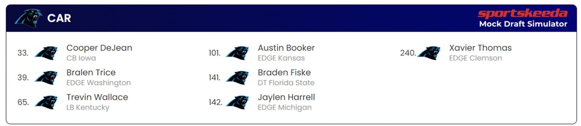 As mentioned previously, their 293.9 yards allowed per game was the fourth-best in the league last year. That is something they can build on. By drafting a cornerback first, before complementing that with four edge rushers, one linebacker, and one defensive tackle, Dave Canales can ensure they have a young and budding defense that can stifle other teams.