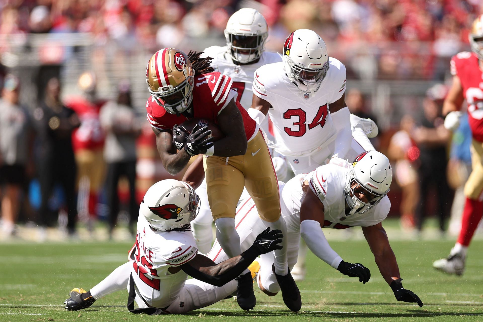 McCaffrey's 13 consecutive games with a touchdown is a franchise record for the San Francisco 49ers, who had a certain Jerry Rice in the past. Against the Arizona Cardinals, "CMC" recorded 177 total yards, 71 of which were through the air, showing just how much Purdy trusts his check-down to his running back.