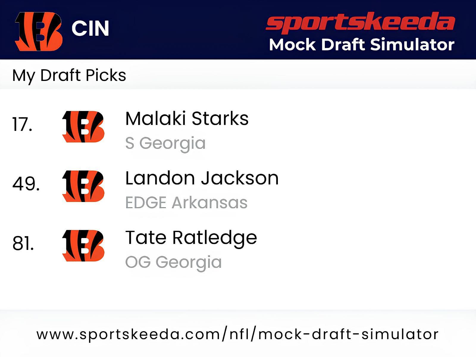 The Cincinnati Bengals need to address the defense, especially finding a replacement for Trey Hendrickson. However, in this simulation, pass rushers Abdul Carter, Jalon Walker, James Pearce Jr and Mykel Williams are already off the board. There is a drop off after these three players.