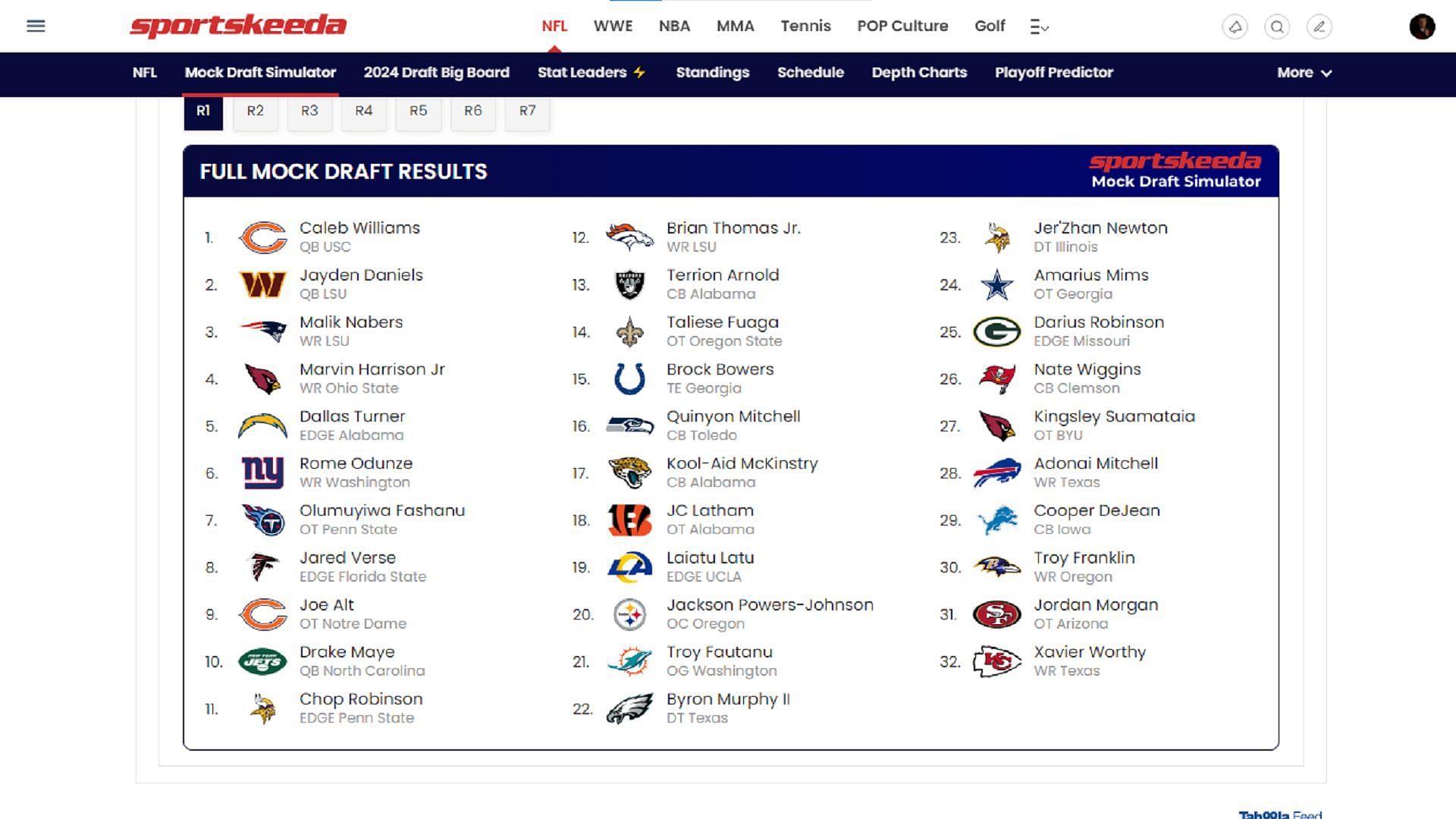 Worst-case scenario per Sportskeeda's Mock Draft Simulator