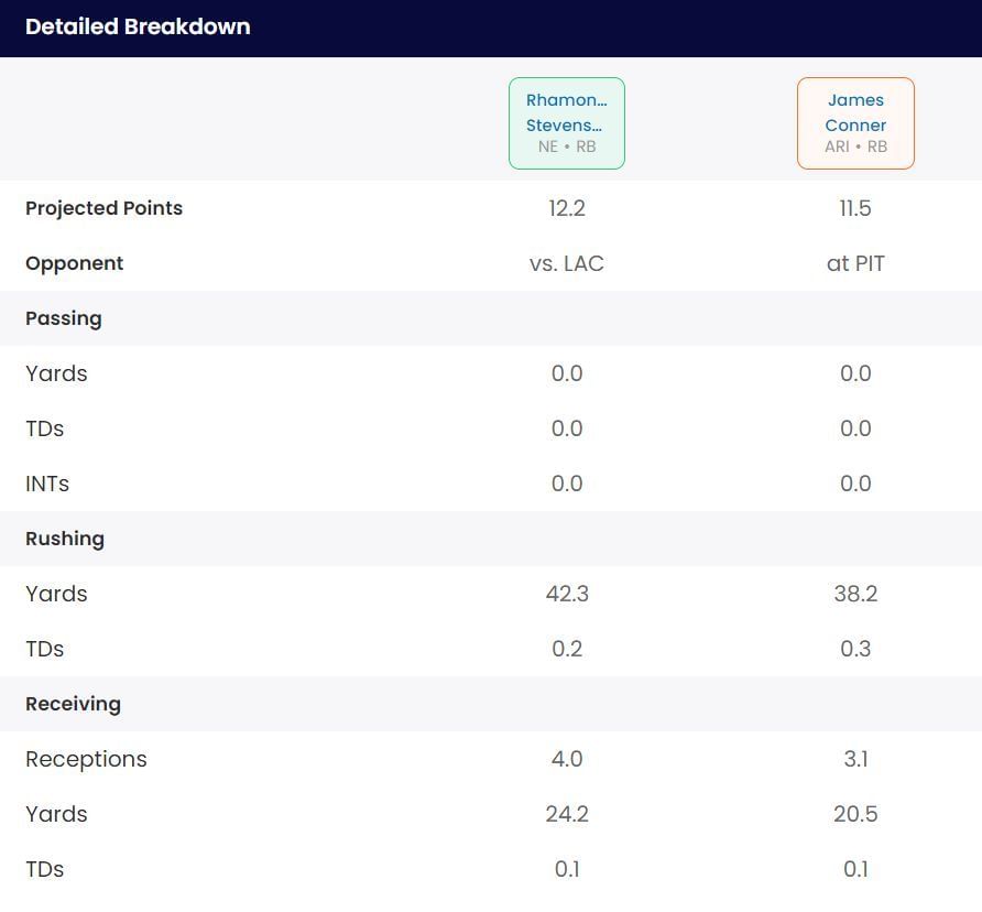 Our Start/Sit Optimizer is also rosy on Stevenson in Week 13, projecting a return of 12.2 points for the Patriots RB.