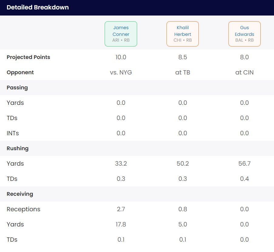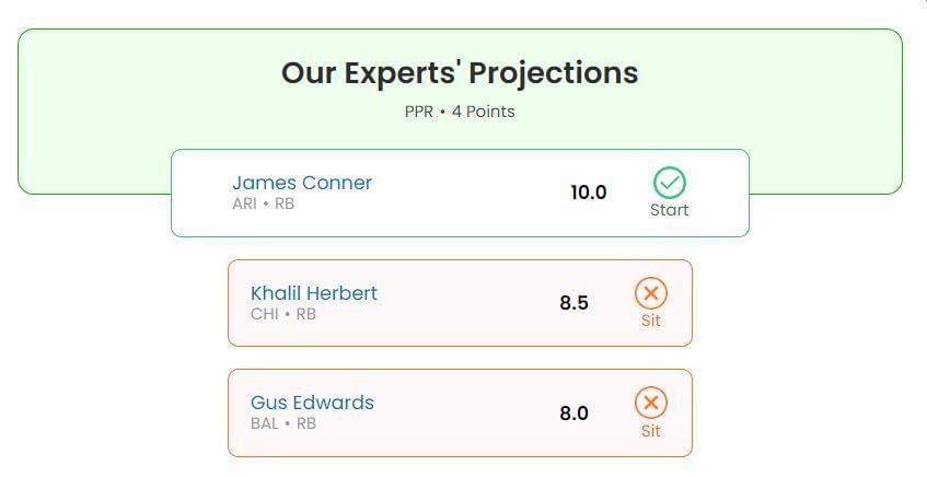 Sportskeeda's Start/Sit Optimizer concurs, suggesting a start for Conner will likely yield more points this week.