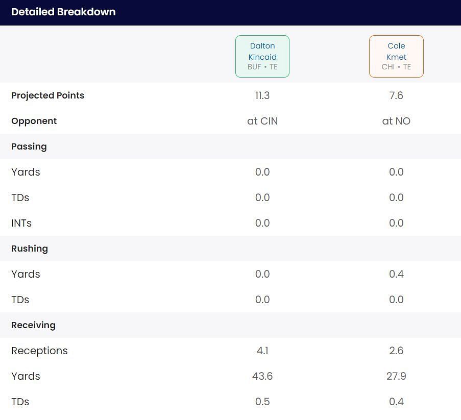 Our Start/Sit optimizer also likes Dalton Kincaid this week.
