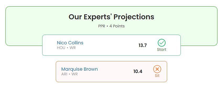 Our Start/Sit Optimizer projects a return of 13.7 points for Collins in Week 9.