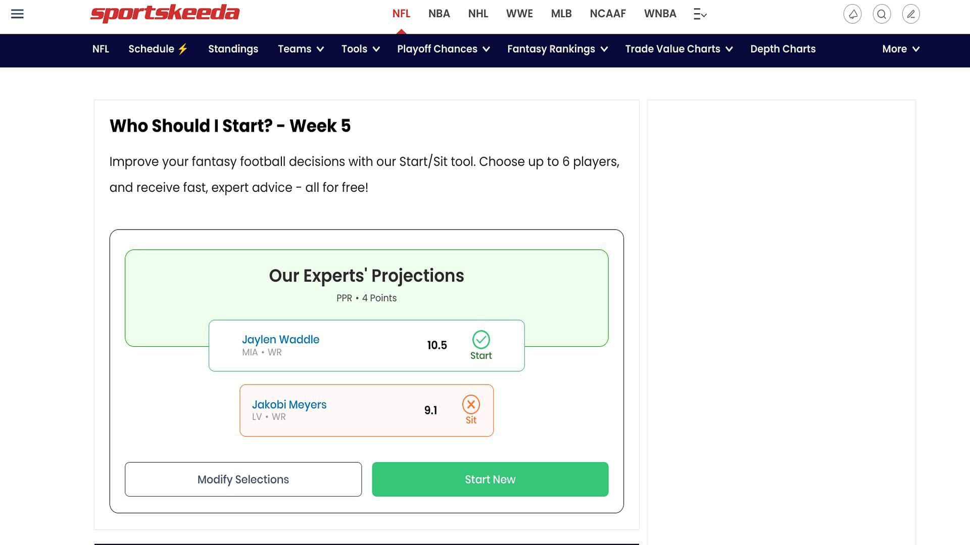 According to Sportskeeda's Start/Sit Optimizer, Waddle gets the nod. Even though Bill Belichick might be gone, Jerod Mayo played in his defense and learned how to coach from him as well. As such, expect the Patriots defense to lock down Tyreek Hill as much as they can.