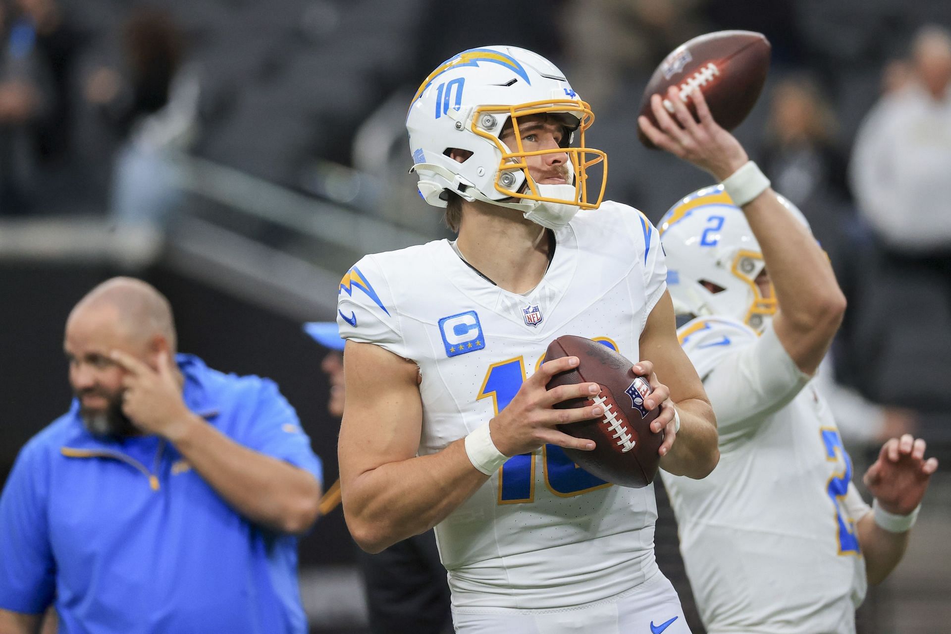 Justin Patrick Herbert (born March 10, 1998) is an American football quarterback for the Los Angeles Chargers in the 2024 NFL season. He was selected by the Chargers sixth overall in the 2020 NFL Draft. Herbert has already started racking up awards, with an NFL Offensive Rookie of the Year award in 2020 and a Pro Bowl selection in 2021. As of Week 18, 2024, he has 137 touchdowns, 45 interceptions, 21,093 passing yards, and a passer rating of 96.7 (via Pro Football Reference).