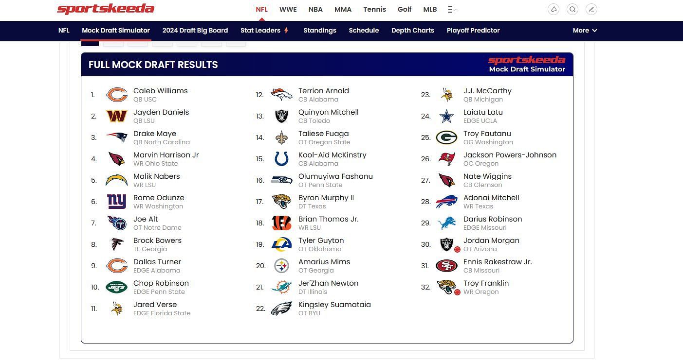 Using Sportskeeda’s 7-round Mock Draft simulator tool, the best-case scenario for the Kansas City Chiefs sees the team secure a long-term OT prospect in JC Latham, as well as adding one of the upper-tier wide receiving prospects in Roman Wilson.
