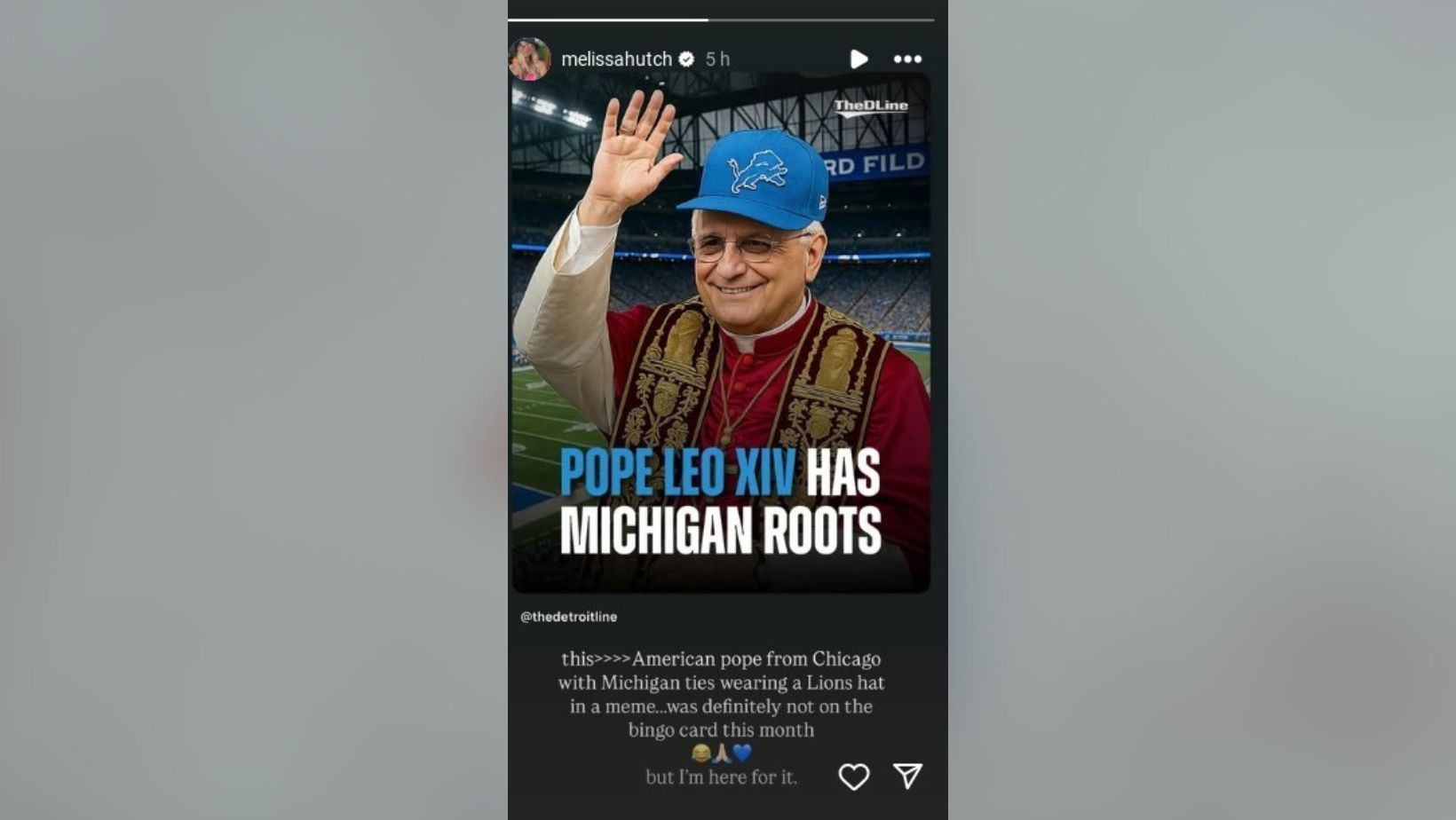 Melissa Hutchinson shared an IG post featuring news of Pope Leo XIV’s American roots in her story on Saturday. In the caption, Melissa confessed to being surprised that the new Pope had roots in Chicago, and being a fan of the Lions: