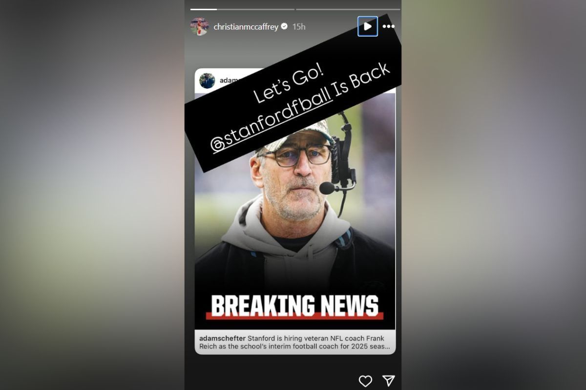 Former Stanford running back McCaffrey posted a five-word reaction on his Instagram story after finding out that Reich would coach the Cardinal for the 2025 season.