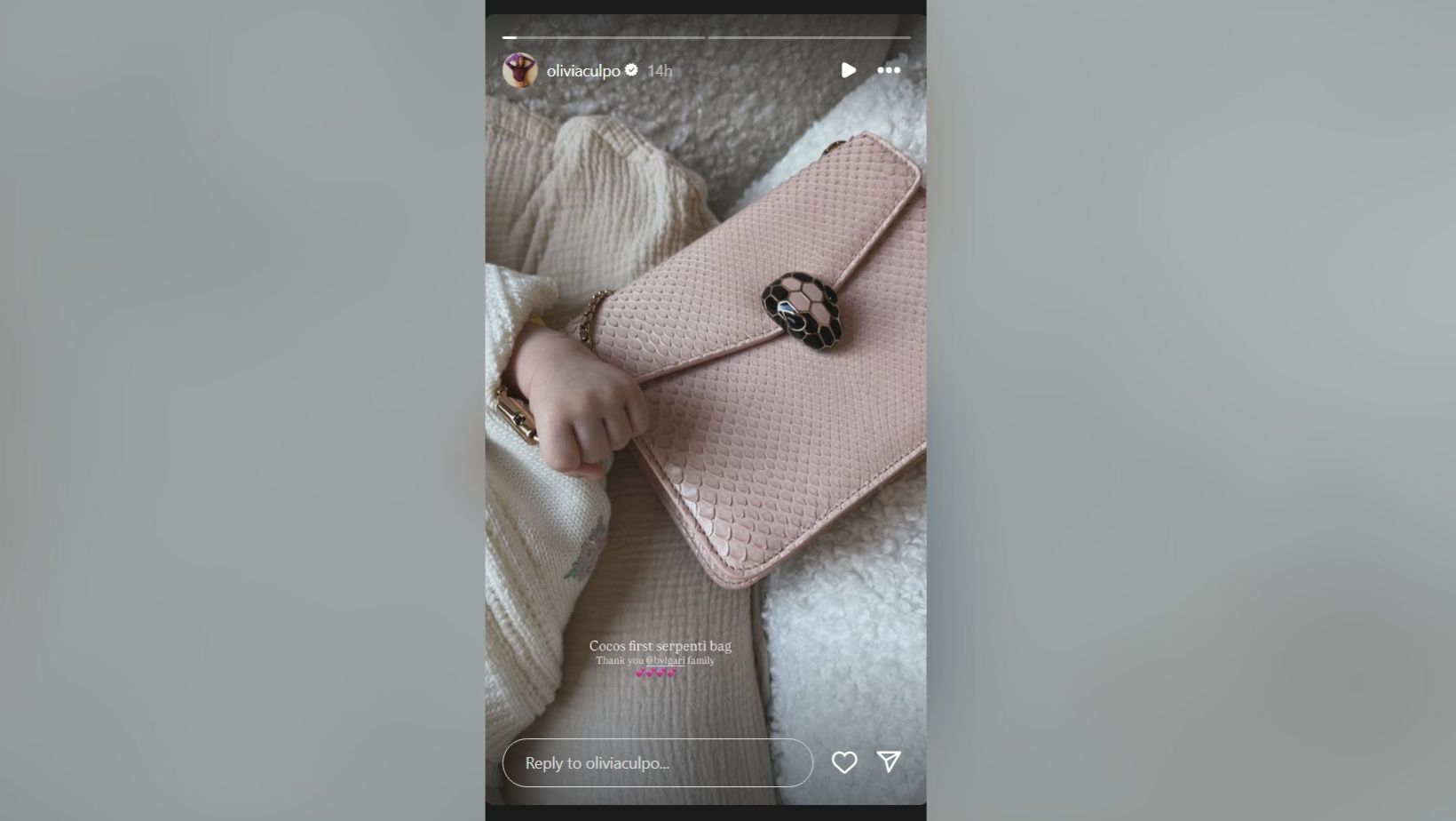 On Sunday, Culpo updated her Instagram story with a picture in which her daughter can be seen holding a light pink BVLGARI bag. According to the beauty pageant, it was her daughter's first-ever serpenti bag, which she seems to have liked.