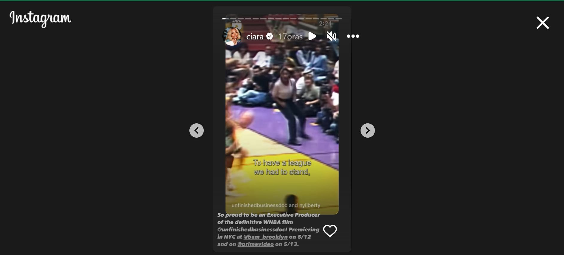So proud to be an Executive Producer of the definitive WNBA film @unfinishedbusinessdoc! Premiering in NYC at @bam_brooklyn on 5/12 and on @primevideo on 5/13.