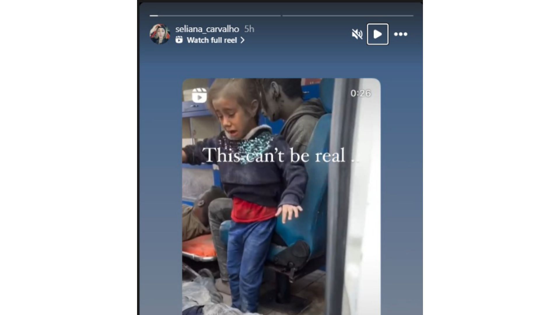 It was an old reel by Abusalama shared by Motaz, who made a plea to the world. Carvalho, who is relatively active on Instagram, couldn't believe what she was seeing was real.