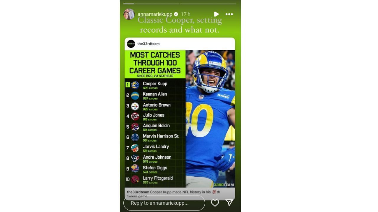 Cooper Kupp's eighth year in the NFL started with a bang in Week 1 as he tied his career high with 14 receptions against the Detroit Lions. However, his season was paused after an ankle injury the following week, which sidelined him for four weeks.