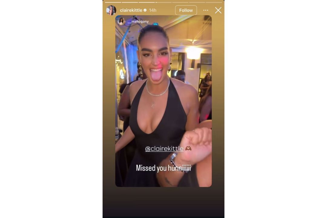 In the IG story, Claire was seen dancing in a sleek black dress with a low V-cut, gold hoops, and a tight bun. Claire later reposted it on her stories, adding,