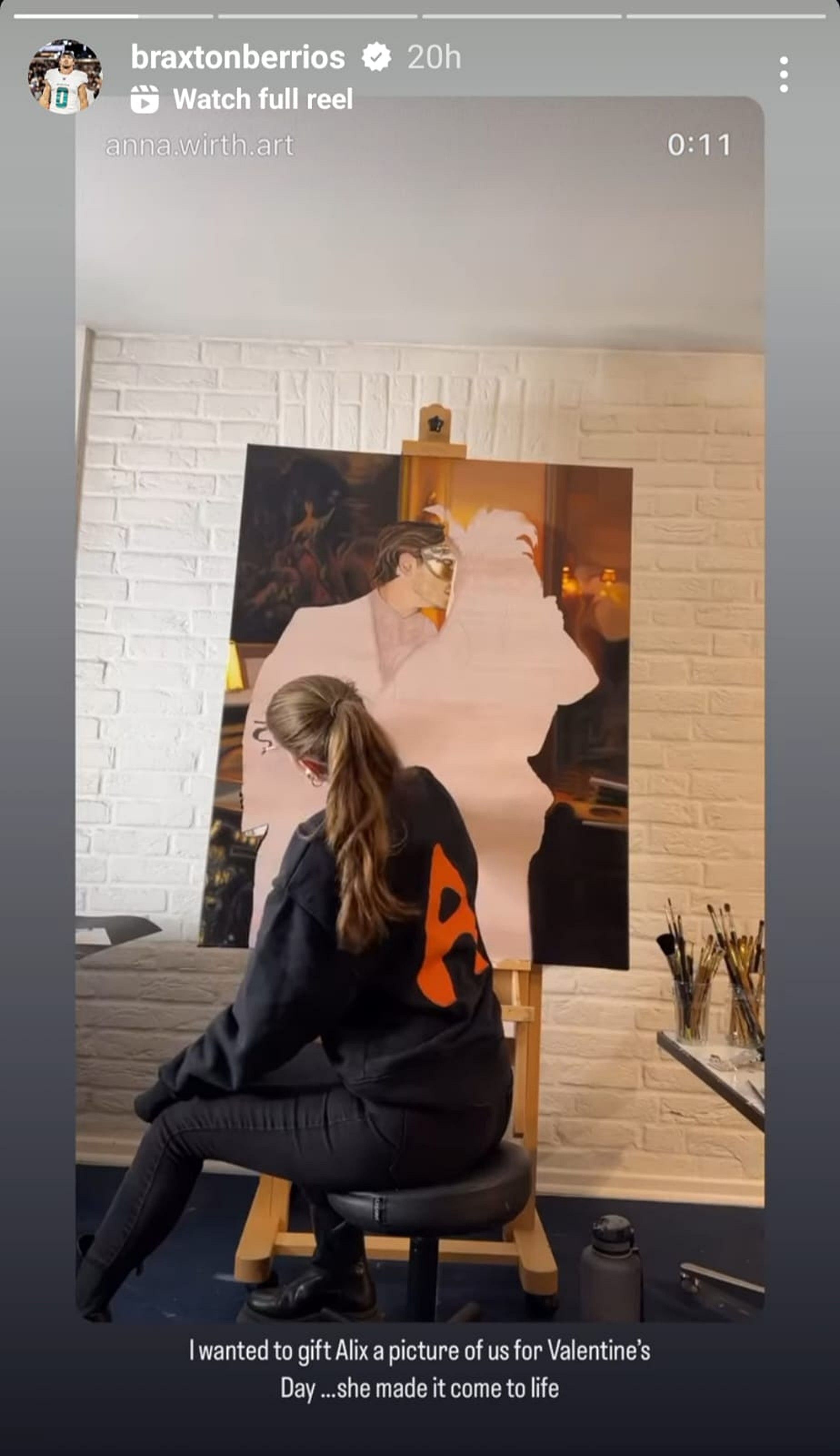In another Instagram story, Braxton Berrios revealed the gift for his girlfriend, Alix Earle, on his Instagram story. He gifted her a beautiful painting of them on Valentine's Day.