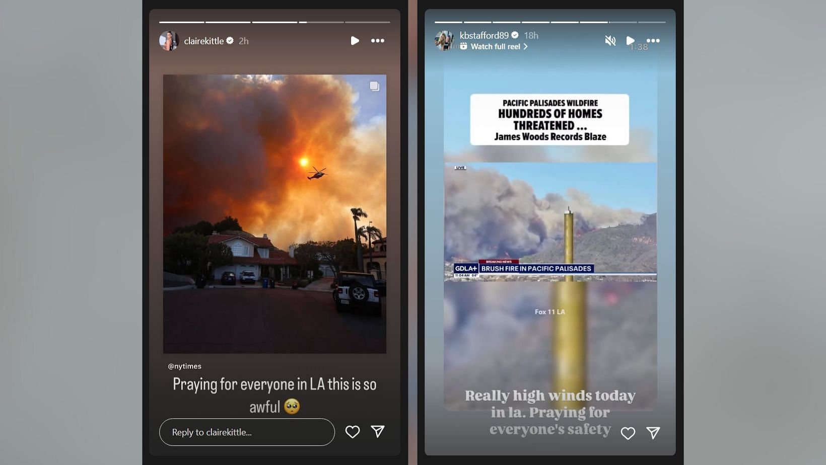 Apart from Emily Mayfield, George Kittle's wife Claire and Matthew Stafford's wife Kelly also shared their reactions to the ongoing Pacific Palisades wildfire. Claire, via her Instagram story, said: