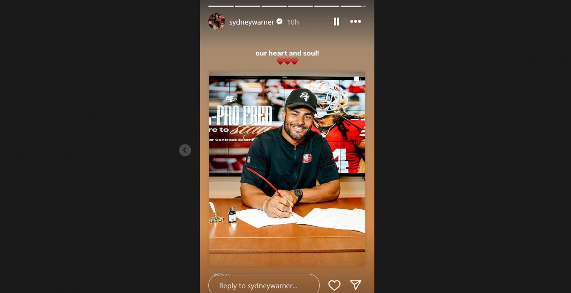 In another Instagram story, Sydney Warner shared a picture of her husband, Fred Warner, signing an extension contract with the 49ers. The LB signed a three-year extension contract, continuing his journey with the team.