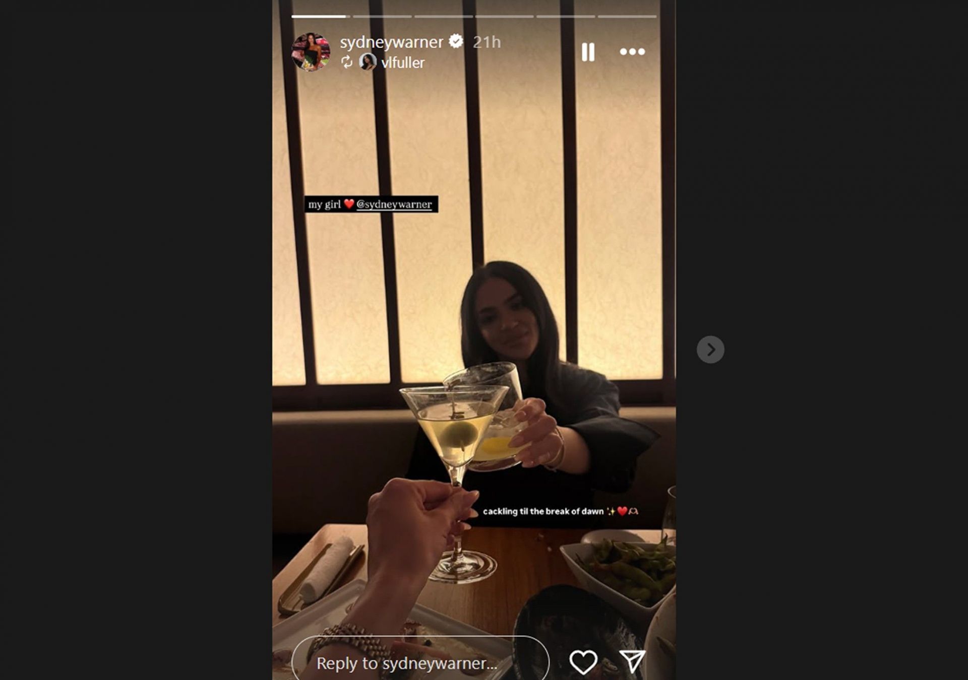 On Friday, Victoria Fuller shared a story on her Instagram account, posting a picture of Sydney raising a toast with their glass.