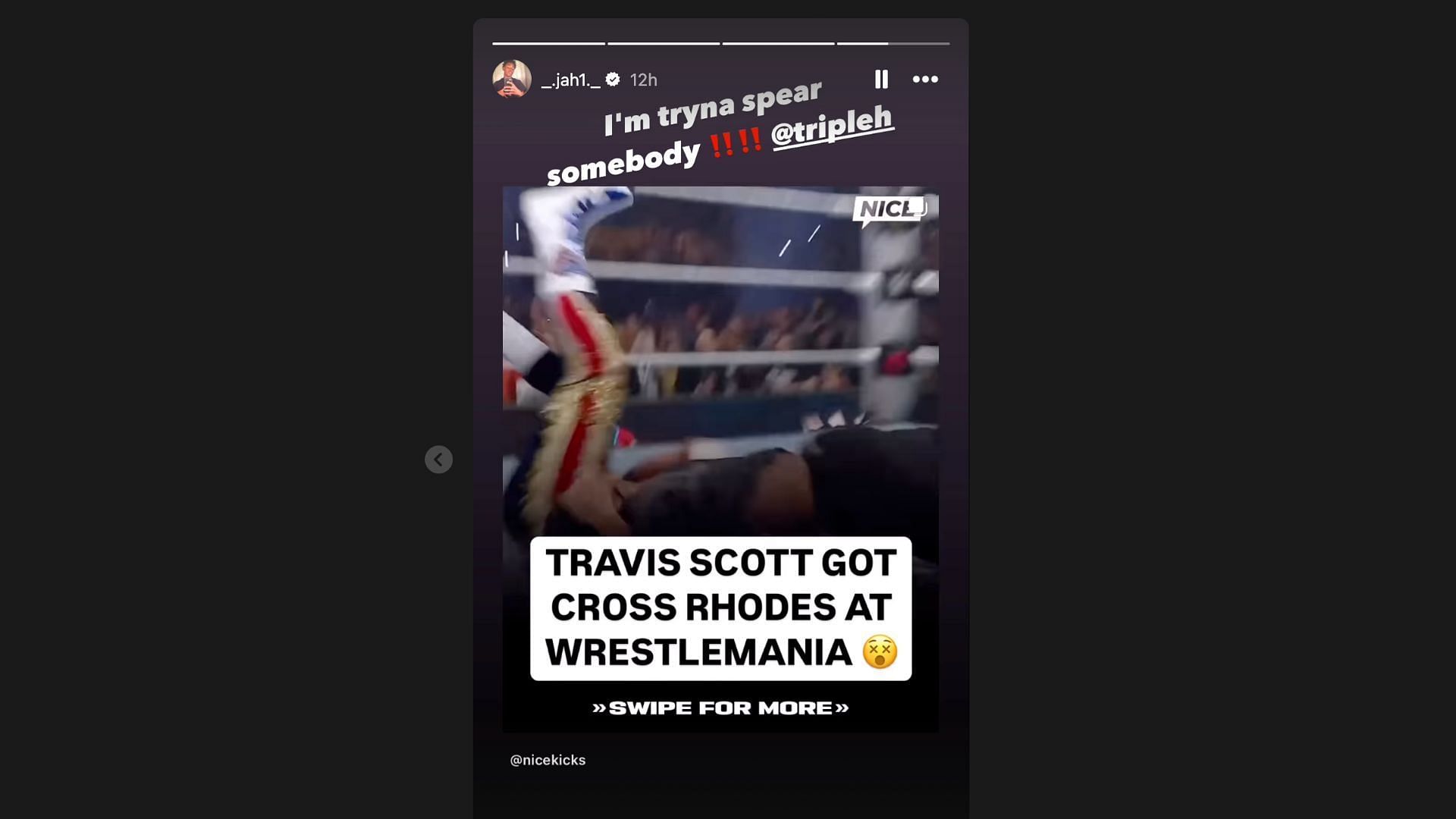 The post came amid widespread fan criticism of Scott's involvement in the show's conclusion. According to independent.co.uk, many WWE viewers were left "seething" and called the rapper's appearance "lame" and "underwhelming" after he interfered in the main event championship match.
