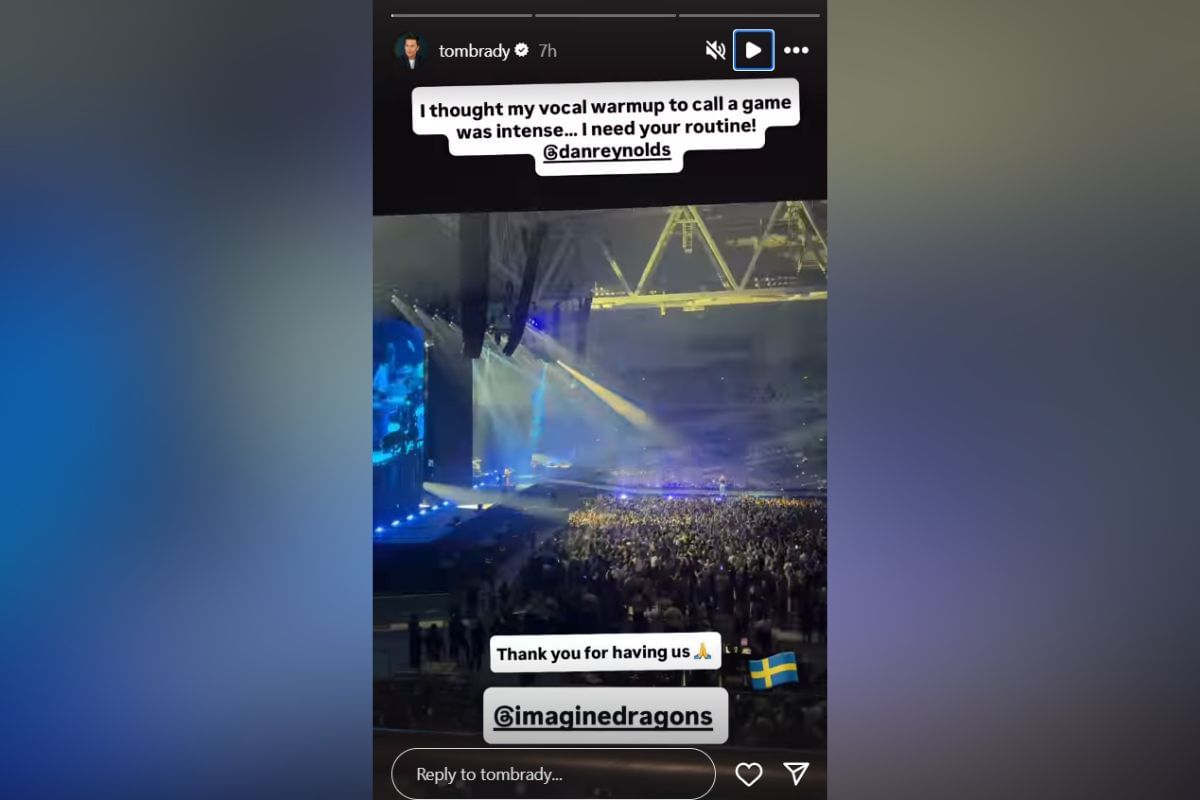 NFL legend Tom Brady gave a special shoutout to Imagine Dragons' lead vocalist Dan Reynolds after attending the band's concert in Sweden. The FOX announcer posted an Instagram story of his outing on Friday, and wanted to know the secret behind Reynolds' vocal routine.