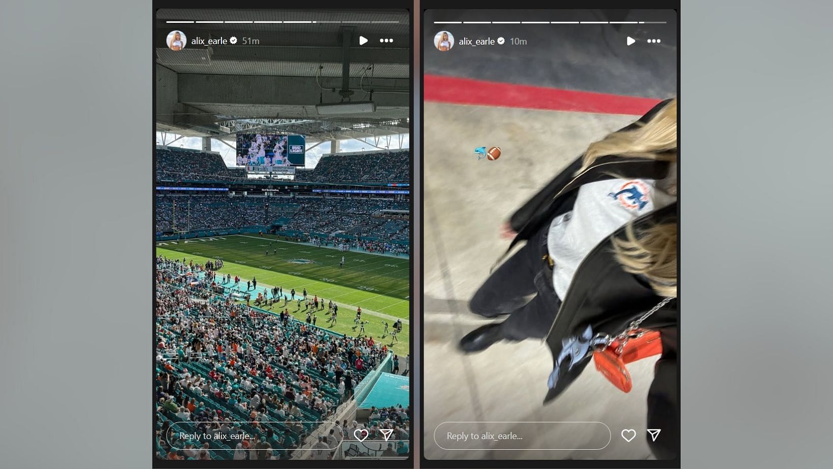 Earle posted several snaps from her visit to Hard Rock Stadium. In one Instagram story, Earle shared a photo of the crowd and showed off her cozy outfit for game day in another.