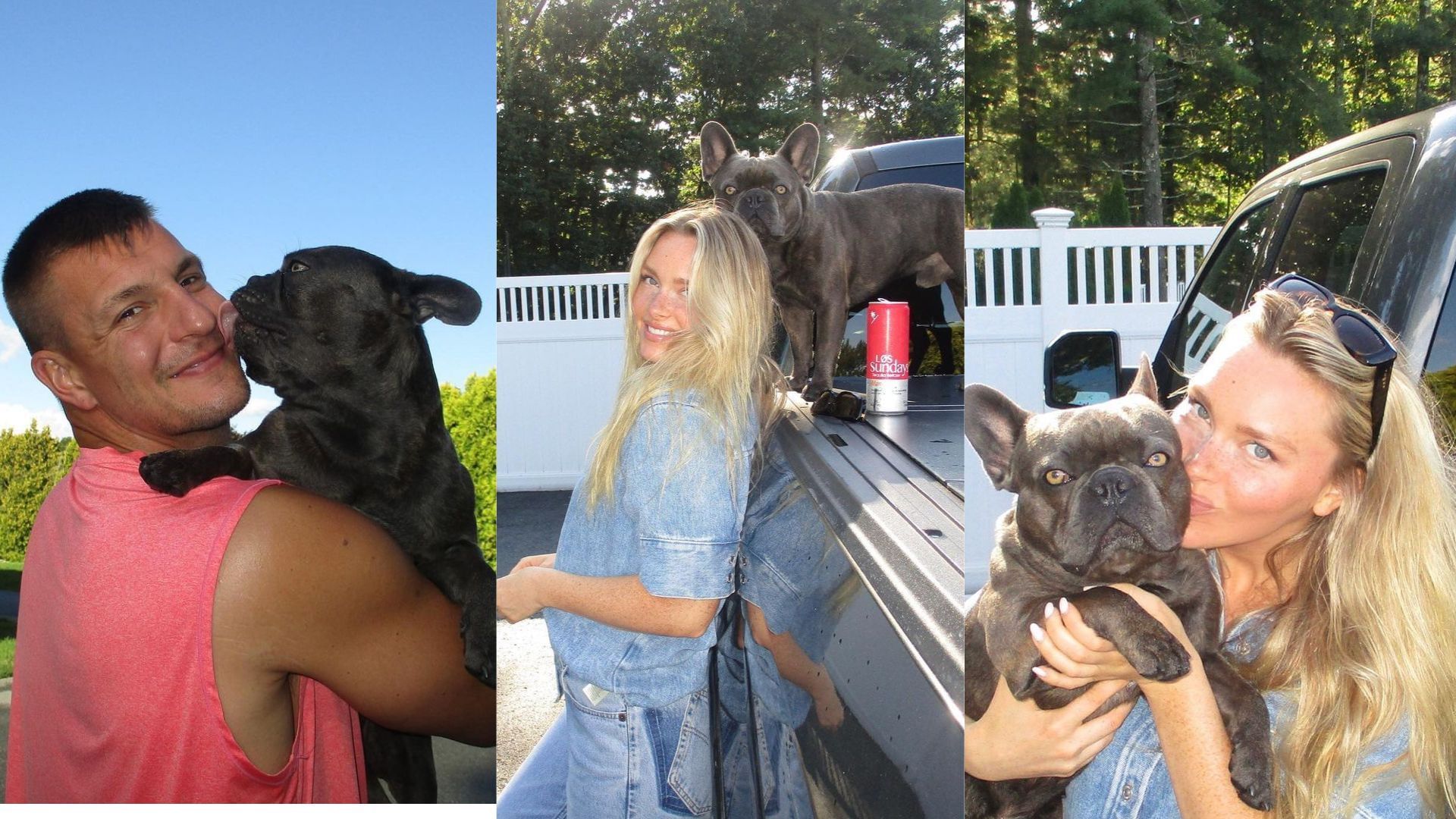 The couple, who has been together for almost 10 years, were seen posing with their French Bulldog, Ralphe Gronkowski. They looked comfortable; Kostek sported an all-denim look, while Gronk opted for a salmon pink tank top.