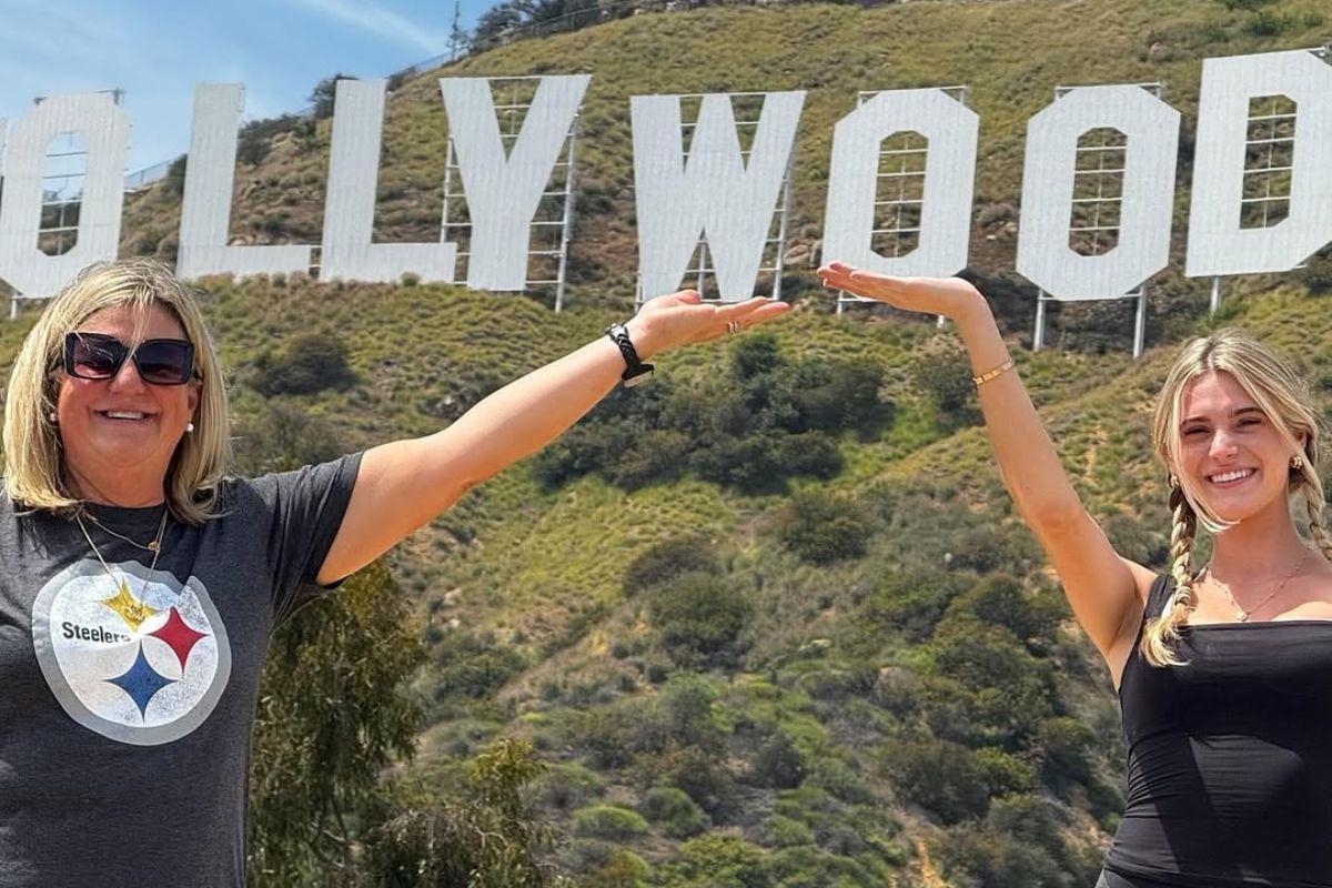 Skoglund also posed with Howard's mother, Maureen, while the iconic Hollywood Hills covered the background in one picture.