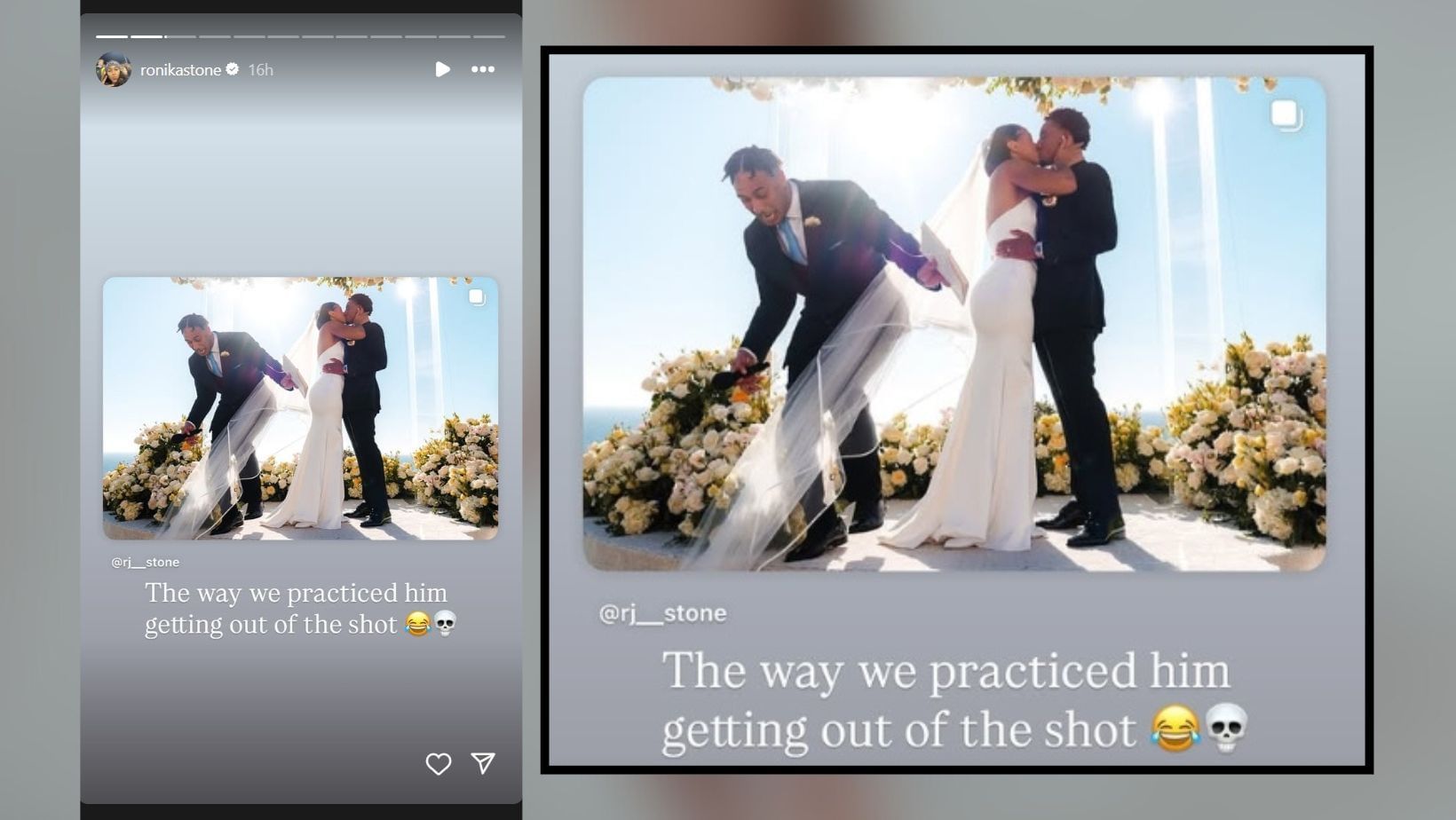Ronika Stone shared a picture from Ron's Instagram post which captured the hilarious blooper. In the photo, Ron can be seen swiftly getting off the stage as Stone kissed her husband Jordan Love after having exchanged vows. In her story, Stone revealed how she and her brother practiced "him getting out" of that exact shot quite a few times beforehand.