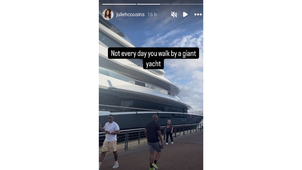 Before sharing the picture of the megayacht, Julie Cousins posted on Instagram that she and Kirk were heading to New Orleans to compete in the P&G Battle of the Paddles. This is a fun table tennis tournament during Super Bowl week, where four top NFL players and four celebrity fans play doubles and singles matches.